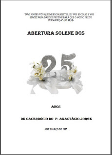 As Bodas Sacerdotais do P. Anastácio Jorge deveriam ser celebradas no dia 14 de Junho, mas por ser dia da semana e porque no domingo dia 18 de Junho é festa do Corpo de Deus e 25 de Junho é feriado Nacional, o Sr. Arcebispo presidente da celebração, propôs o dia 9 de Julho 2017, por ser o dia em que ele está livre sem outro compromisso pastoral agendado.